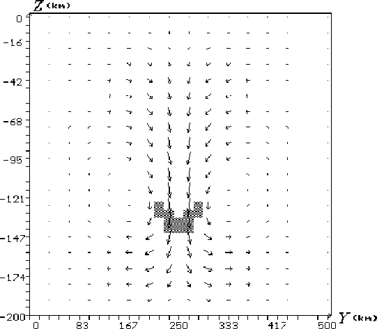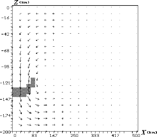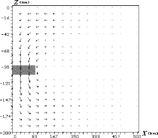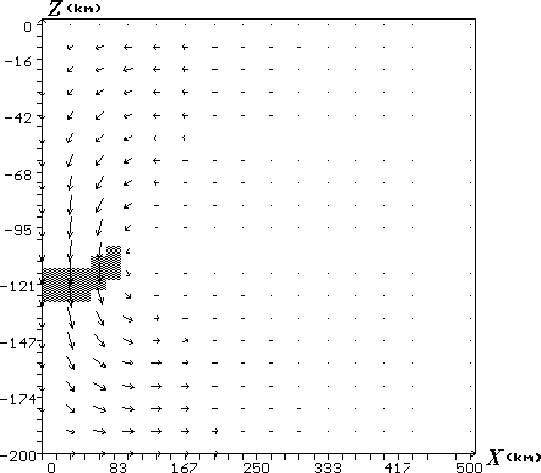 примерно равна 0.92 км/млн.лет; поверхность опускается вслед за линзой